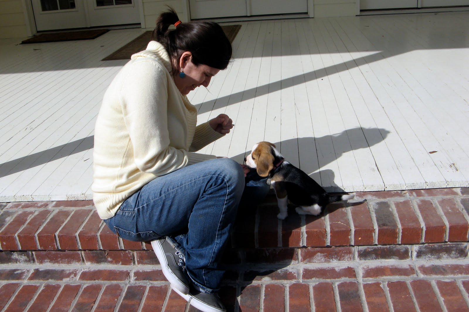 Maggie meeting her first Kitty Cat (just before it reached up and swatted her in the nose)